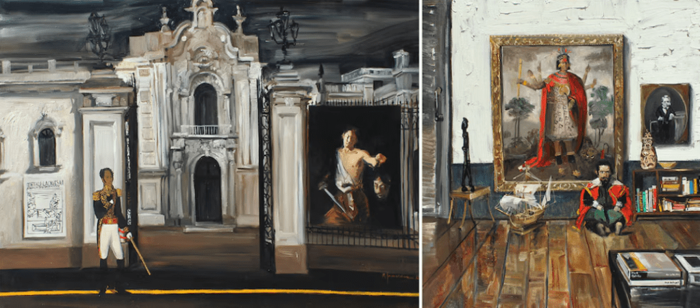 Por su parte, Rubén Saavedra, un artista nacido en Chiclayo en 1992, ha desarrollado una propuesta artística que invita a la reflexión sobre la historia y la estética del arte. Su obra se caracteriza por un enfoque ecléctico que combina elementos autóctonos e hispanos, explorando así la identidad mestiza en toda su amplitud. En ese sentido, Saavedra utiliza su arte para interpelar la memoria colectiva, reconstruyendo los hechos históricos a su manera.