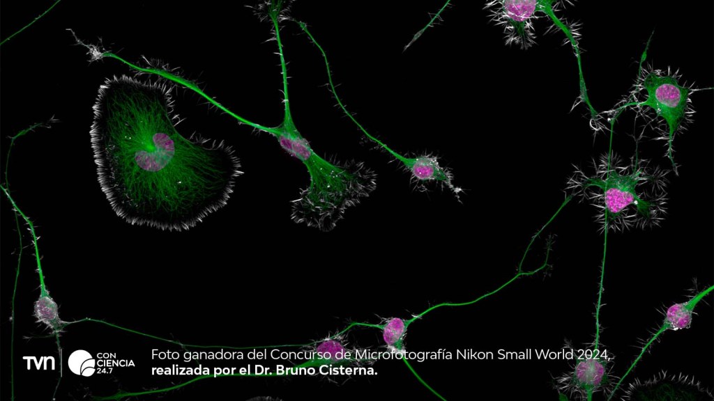 El Dr. Bruno Cisterna, con su destacada imagen capturada mediante microscopía de superresolución, logró superar a miles de participantes de todo el mundo. Para obtenerla, utilizó un microscopio confocal de disco giratorio SoRa de Nikon, una tecnología avanzada que permite alcanzar niveles de resolución extraordinarios.